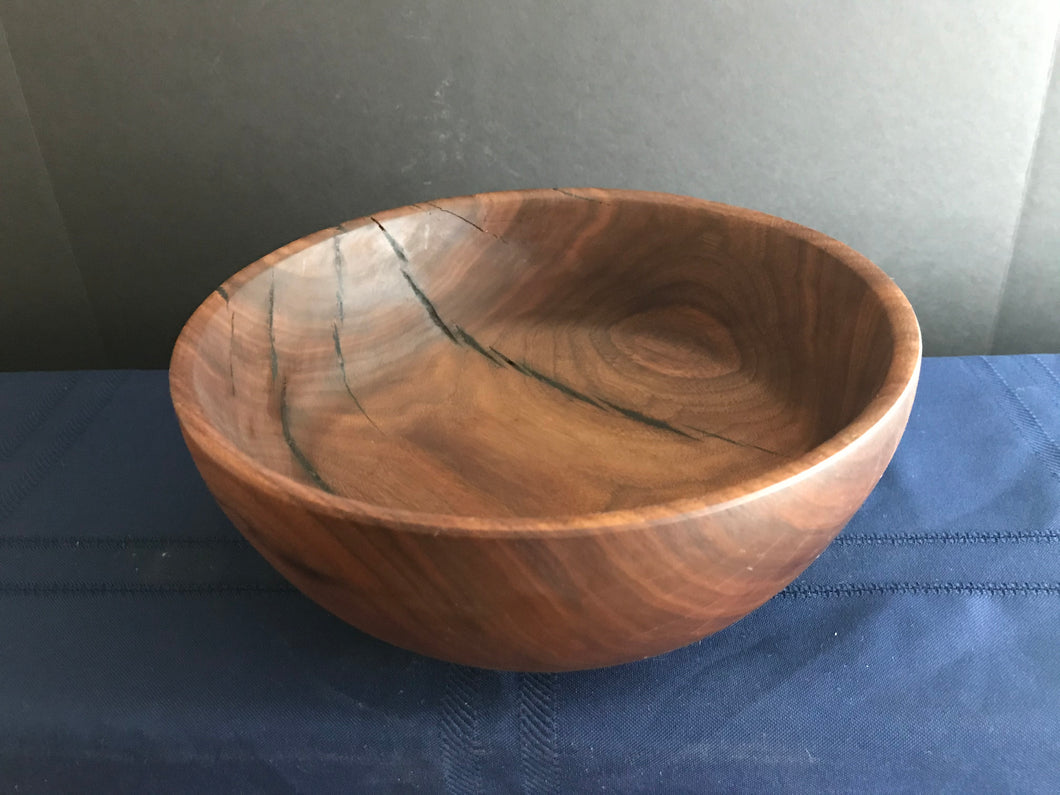 19-11-131 - 10” X 4” - Medium Sized Salad Bowl - This one is a little bit smaller than the previous pieces of Walnut, but still large enough for a 3-4 person salad bowl. Cracks in this one are filled with the old stand-by formula of CA glue and coffee grounds.